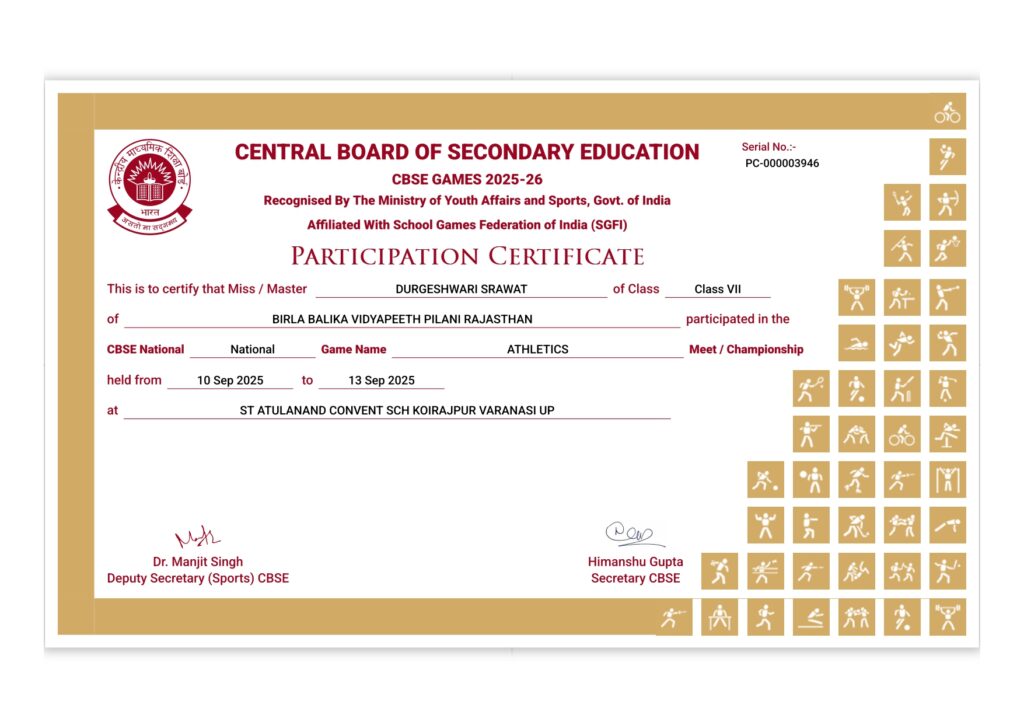 - Medhavi Kachhawaha (12-B): Silver in Javelin Throw (U-19).