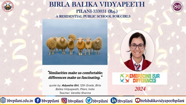 At Birla Balika Vidyapeeth, we believe that every individual brings a unique perspective and talent to the table. Our participation in Embracing Our Differences is a testament to our commitment to promoting inclusivity, kindness, and respect.