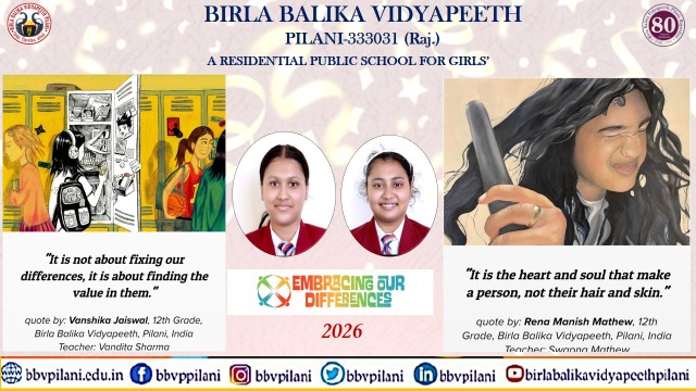 Birla Balika Vidyapeeth, Pilani, is proud to be a hub of inclusivity, where traditions meet modernity and differences are valued. Our students have consistently showcased this ethos through their participation in the Embracing Our Differences competition, a prestigious international art exhibition that promotes kindness, respect, and understanding.