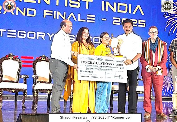 Shining among the brightest innovators, Nitya Joshi (XI), Rashmi Sinha (XII), and Shagun Kesarwani (XII) earned their place among the Top 9 Innovators in India (Private School Category), receiving Gold Medals and Certificates of Achievement. Adding another feather to the cap, Shagun Kesarwani (XII) was awarded the prestigious Runner-Up Trophy at YSI 2025.